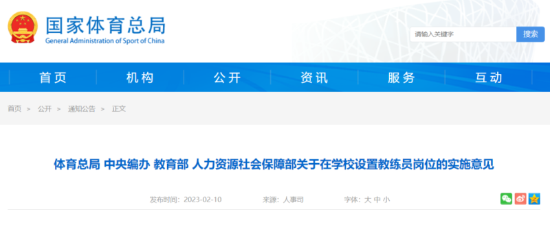 在学校设置教练员岗位是对学校体育工作力量的有力加强,是体教融合的重要举措,事关青少年身心健康和全面发展。各地要高度重视,加强组织领导。各级机构编制、教育、人力资源社会保障、体育等部门要提高认识,凝聚共识,分工协作,共同支持保障,形成推进合力。
