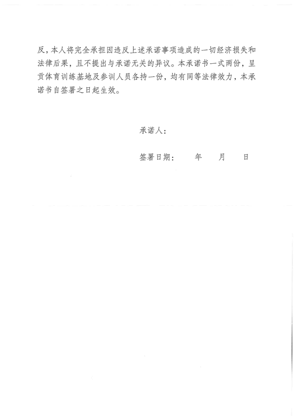 (二)训练营学员于12月14日20:00前,携承诺书(附件2)自行到呈贡体育训练基地报到,联系人:钱顺敏 13577093206;12月25日12:00前离会;