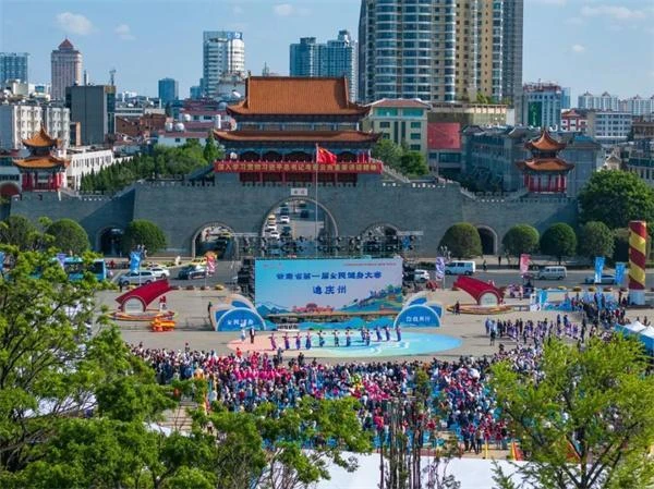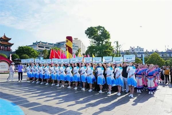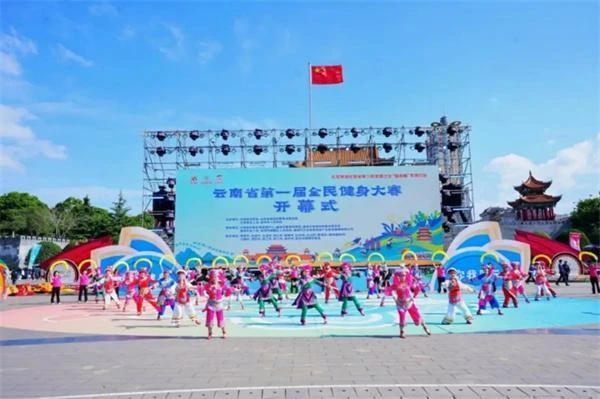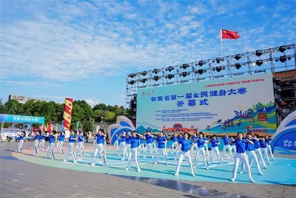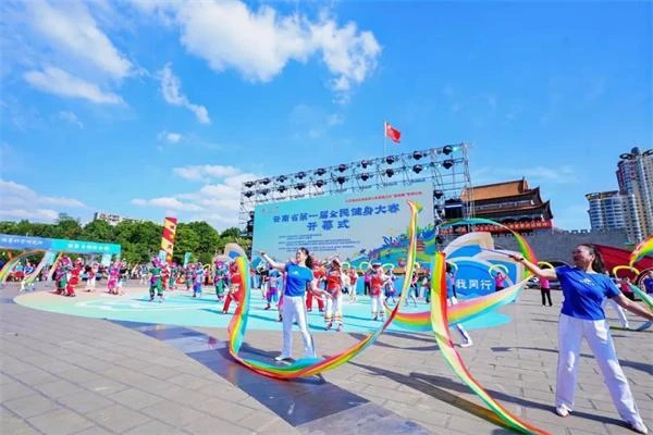 4月18日,曲靖市地标南城门广场热闹非凡,云南16个州(市)的运动员身着少数民族盛装,跳起民族健身操,唱起幸福欢歌,为云南省第一届全民健身大赛拉开序幕,以曲靖为始,省级全民健身盛会将走进16个州(市)的景区、街区、商圈,走近群众身边,开启全民健身、全民参与、全民受益的“强体魄”新篇。
