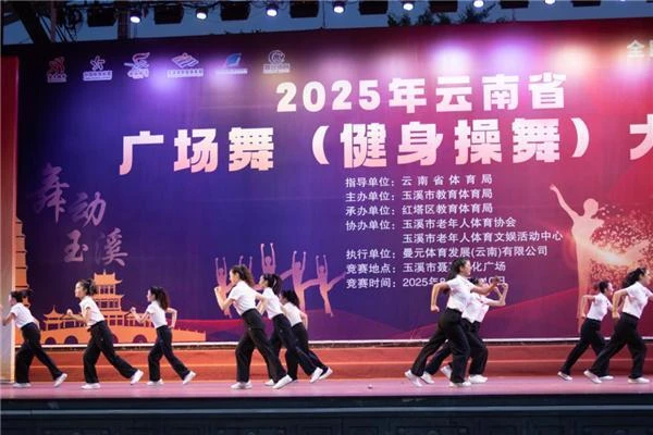 8月8日至10日,云南省广场舞(健身操舞)大赛在玉溪市聂耳文化广场上演。全省15支代表队300余名参与者齐聚赛场,在规定套路和自选套路两个项目中展开角逐。本次大赛以“全民参与、全民共享、全民健康”为理念,遵循“共办、共享、共赢”原则,通过高水平赛事助力健康中国、体育强国建设,进一步激发群众健身热情,提升全民运动意识。