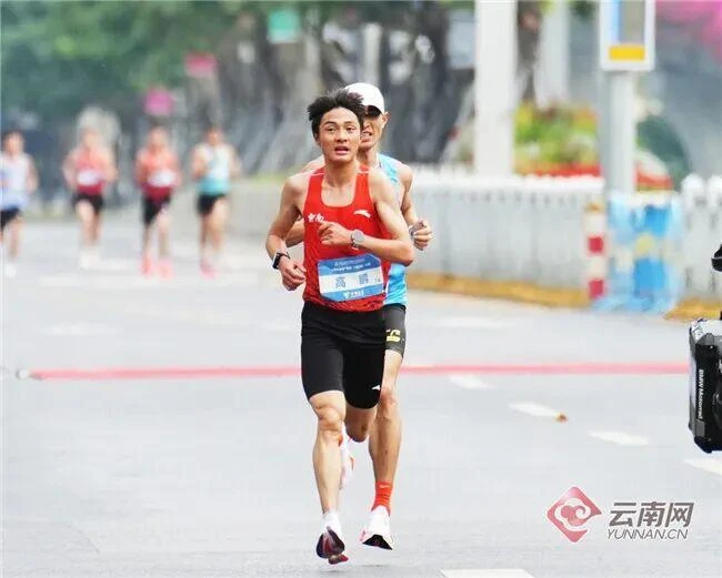 男子马拉松比赛中,高鹏一直在领先集团中表现亮眼,跟随冠军何杰,何杰在36公里处提速,高鹏跟随领先集团,顺利完赛,最终收获了一枚银牌。云南共有高鹏、董国建、杨绍辉、陈天宇4名选手参赛,高鹏在比赛中始终保持着较好的配速,将自己的位置稳定在争冠集团中。
