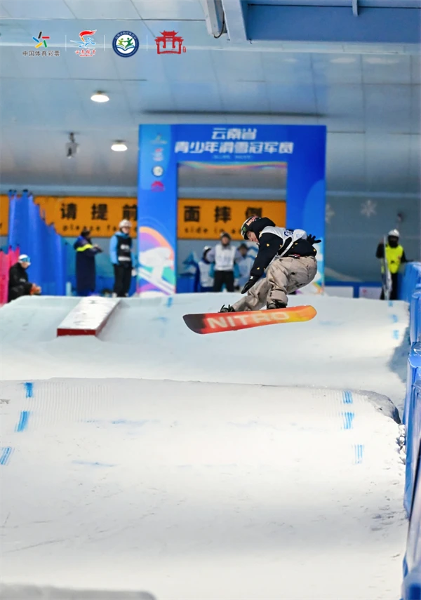 比赛首日,素有“雪上冲浪”之称的单板滑雪坡面障碍技巧项目率先打响。该项目要求运动员具备良好的柔韧性和核心控制力,选手在滑行过程中需要完成飞行、跳跃、翻腾、旋转等一系列技术动作,失误少、动作难度高的运动员能获得更高的评分。随着云南省参与滑雪运动的青少年越来越多,这一偏向极限项目的比赛也吸引了越来越多的运动员参与。选手们在一次次起跳和落下的滑行中勇于突破自我、挑战极限,也为现场观众呈现了精彩的视觉盛宴。