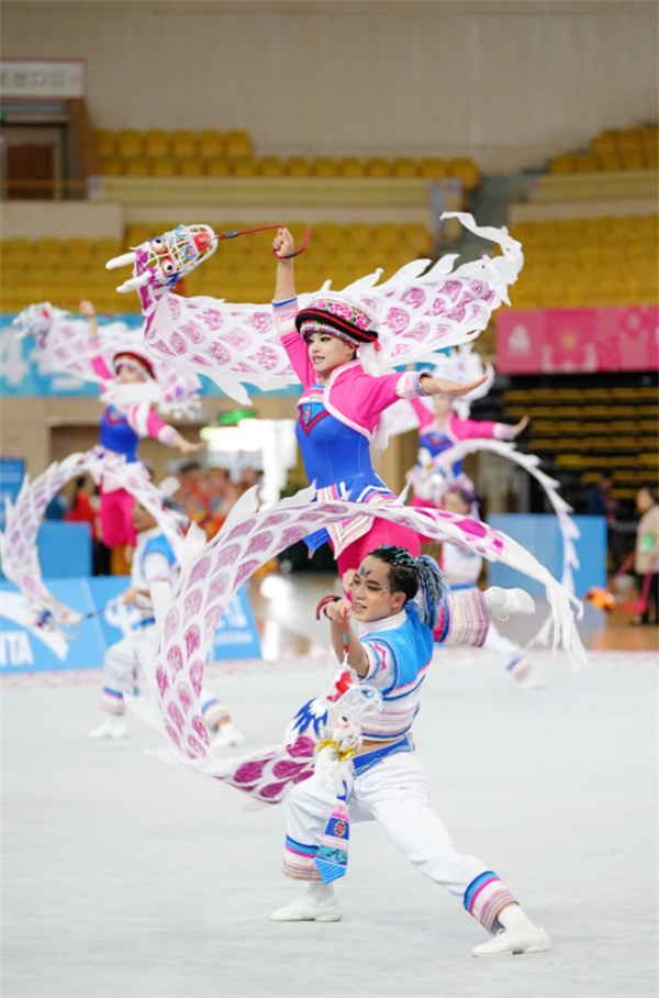 本届全运会首次将舞龙舞狮加入群众展演项目,赛事设南狮自选、南狮障碍、南狮传统、舞龙障碍、北狮自选、舞龙规定、舞龙自选、彩带龙自选等8个单元。预赛阶段,我省选派的来自云南民族大学、云南体育运动职业技术学院的各支参赛队伍均表现出色,舞龙规定、舞龙障碍、彩带龙自选3个项目全部进入决赛。5月份预赛结束后,在成人视频 主导支持下,各参赛队一直依托学校坚持日常训练,巩固赛事成果。从10月初开始,成人视频 组织开展了为期1个月的集中训练,提升各支队伍竞技状态,充分做好赛前准备。