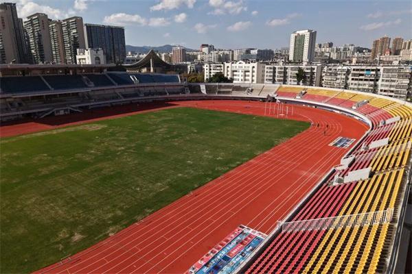历经多次升级迭代,场馆功能持续优化:2005年首次大规模改造后,足球场草坪与配套设施达到全国领先水平;2022年获评“云南省体育工作先进集体”;2024年12月启动新一轮全面提升改造,针对田径场塑胶跑道、足球场草坪、灯光系统、显示屏、音响设备等核心设施进行升级,所用材料均符合国内赛事标准,国际标准复合型塑胶跑道已初步完工,足球场采用天然草与人工草混合系统,排水性能显著提升。截至目前,整体工程进入收尾阶段,后续将完成剩余区域修缮维护。