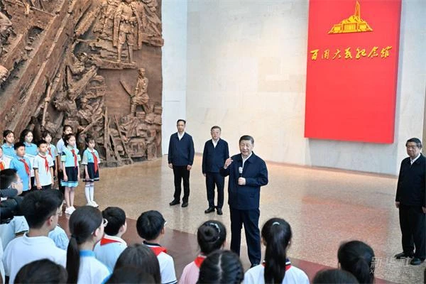 7日下午,习近平总书记来到山西省阳泉市,向百团大战烈士敬献花篮,参观百团大战纪念馆。在纪念馆大厅,习近平同青少年学生和纪念馆工作人员亲切交流。他对大家说,今天来到这里有特殊意义。七七事变是全民族抗战的开始,中国共产党是全民族抗战的中流砥柱,百团大战让全世界看到了中国共产党和中国人民抗战的意志和力量。我们坚持14年抗战,作出了巨大牺牲。前事不忘,后事之师。孩子们要争做民族的脊梁,一定要把我们国家建得强盛起来,要为全世界的和平作贡献。希望寄托在你们身上,未来是属于你们的。希望你们好好努力、奋发图强,做一个堂堂正正、光荣自豪的中国人。