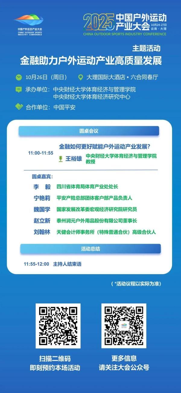“金融助力户外运动产业高质量发展”嘉宾及议程抢先看