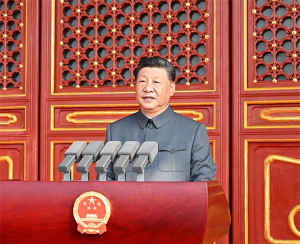 9月3日,纪念中国人民抗日战争暨世界反法西斯战争胜利80周年大会在北京天安门广场隆重举行。中共中央总书记、国家主席、中央军委主席习近平发表重要讲话。新华社记者 燕雁 摄