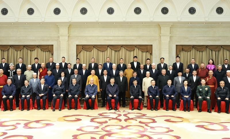 9月23日下午,中共中央总书记、国家主席、中央军委主席习近平在乌鲁木齐亲切接见新疆维吾尔自治区宗教界爱国人士和基层宗教工作干部代表,并同大家合影留念。新华社记者 丁林 摄