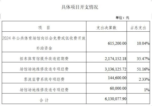 2024年公共体育场馆向社会免费或低收费开放补助资金项目经费615200元,主要用于场馆运营、设备更新、能源消耗等方面。