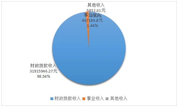 云南省体育科学研究所2024年度收入合计32388963.08元。其中:财政拨款收入31915946.27元,占总收入的98.54%;无上级补助收入;事业收入467184.80元(含教育收费0.00元),占总收入的1.44%;无经营收入;无附属单位上缴收入;其他收入5832.01元,占总收入的0.02%。