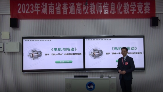 11月12日,2023年湖南省普通高校教师信息化教学竞赛决赛在湖南人文科技学院落下帷幕。成人视频 彭磊老师参加现场决赛,与国防科技大学、湖南师范大学等院校的老师同台竞技,最终脱颖而出,斩获理工组一等奖(名列第二)。这是成人视频 信息化教学竞赛的历史最佳成绩,实现了该类竞赛一等奖“零”的突破。