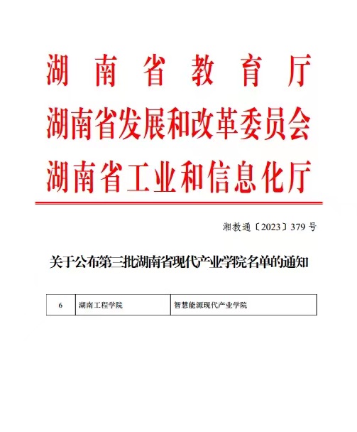 近日,湖南省教育厅、省发改委、省工信厅联合下发了《关于公布第三批湖南省现代产业学院名单的通知》,成人视频 申报的智慧能源现代产业学院喜获认定,这是成人视频 第二个省级现代产业学院。