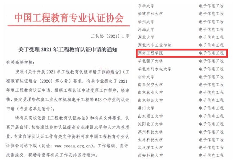 近日,中国工程教育专业认证协会公布了2021年受理工程教育专业认证申请的名单,成人视频 成人视频 电子信息工程专业的工程教育认证申请获批受理,这是成人视频 继电气工程及其自动化、自动化后又一个参与工程教育认证的专业。