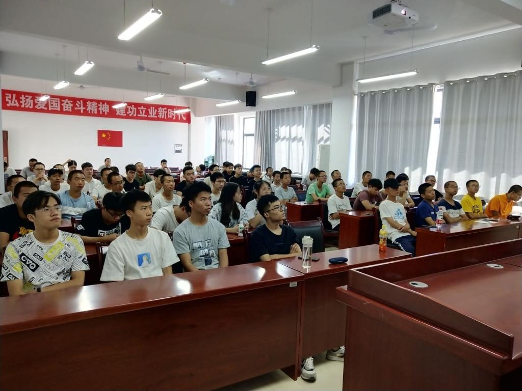 当天上午,学办赵玲令老师早早来到教室进行准备和安排,团学干部、党员、和2019级新生在9:30的时候就已经在座位上坐好,守候在屏幕前。上午10点,阅兵式开始,师生们肃然起立,军乐团奏乐,鸣礼炮,升国旗,唱国歌。国家主席习近平在天安门发表重要讲话,并乘车检阅部队。紧接着海陆空三军分列式进场:数十个徒步的方队步伐统一,军姿挺拔;一辆接着一辆的坦克装甲,缓缓驶过广场,先进的新式战机组成梯队从天安门上空呼啸而过。这一支支威武之师无不彰显着中国如今强大的综合国力,在场的同学们自豪之情溢于言表,民族自豪感油然而生。