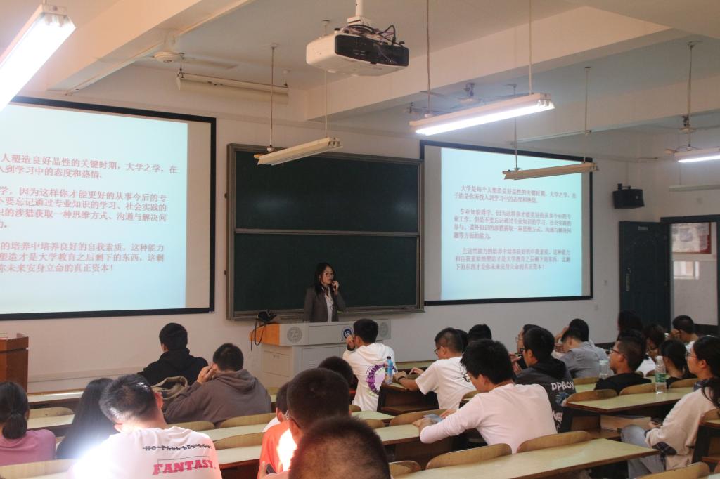 为进一步发挥基层团组织的战斗堡垒和团干部的模范带头作用,增强团员意识教育,提高团干部自身能力素质,加强团干部队伍建设,成人视频 于10月18日中午在主教学楼D201开展了“青春讲堂”——团干部成长主题团课。各班团支书、组织委员、宣传委员以及团总支学生会干部近100人聆听团课。
