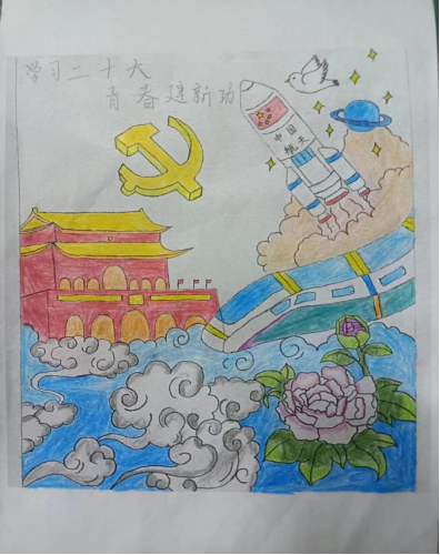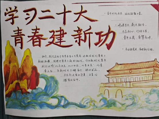 主持人陈旭敏带领大家学习了党的二十大报告的内容,通过视频教学的方式让同学们了解中国共产党建立百年来的艰辛与磨难。新时代青年应当自信自强、踔厉奋发,让爱党爱国爱校的种子在心里生根发芽。