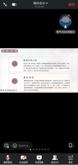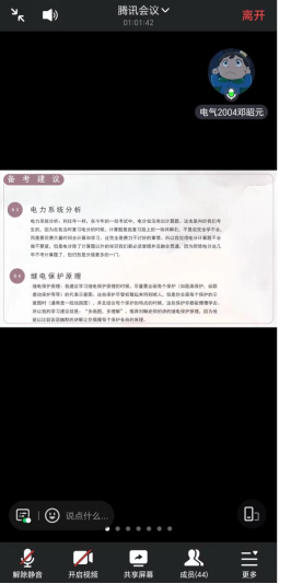 为鼓励同学们寒假期间积极学习,增进成人视频 学生对国家电网招聘考试的了解,明确学习目标,从而制定科学的国网考试备考规划,达到少走弯路、有效备考的目的,1月25日15:00,成人视频 使用腾讯会议以线上的形式组织开展国网经验交流会。会议邀请了已经成功上岸的电气工程及其自动化2004邓昭元分享备考干货经验。学院党委副书记李延平、学风专干杨小丽荣出席本次活动。