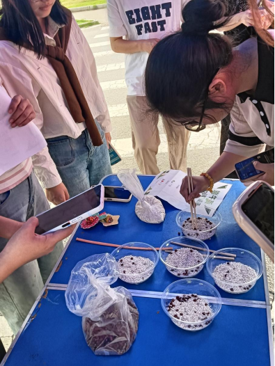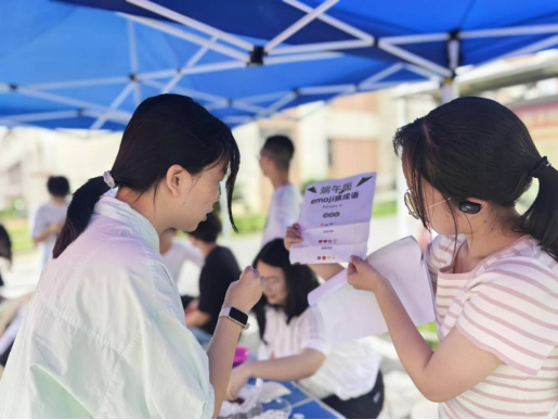 活动现场,夹红豆、DIY五色绳、端午节知识PK和emoji猜成语等环节丰富多彩,吸引了众多学生的关注。同学们在有限时间内用筷子在混合着红豆和糯米的碗中夹出所有红豆,紧张刺激的游戏不仅锻炼了同学的协调能力也激发了大家的参与热情。在“DIY五色绳”环节中,同学们静心思考、耐心操作,亲手编织象征吉祥如意的五色绳。在知识PK环节,通过与端午节有关的知识问答,同学们深入了解了端午节的起源、发展和文化内涵,也认识到了屈原的伟大精神和对国家民族的深厚情感。在emoji猜成语过程中,同学们充分联想,认识到了许多与端午有关的新成语,也在轻松愉快的氛围中感受到传统文化的魅力。不仅锻炼了思维能力,还学会了在轻松愉快的环境中与他人沟通和交流。