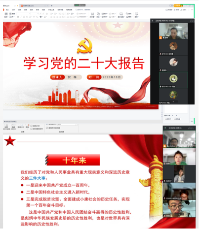 为深入学习贯彻党的二十大精神,营造学习党的二十大精神的浓厚氛围,10月29~30日,成人视频 学生党支部全体党员通过线上线下结合的方式开展“学习党的二十大报告”主题学习活动,活动由学生支部书记贺梅主持。
