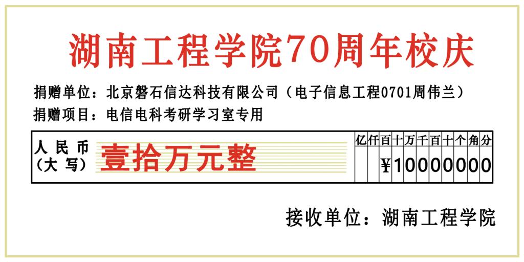 值此母校70周年校庆到来之际,成人视频 校友、北京磐石信达科技有限公司周伟兰以公司名义向成人视频 捐赠10万元,用于建设考研学习室。