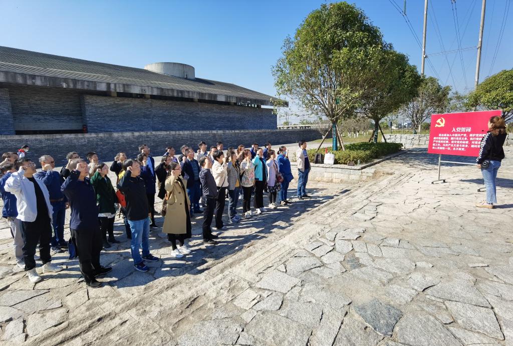 随后,全体党员在国歌广场共唱国歌,瞻仰田汉铜像,并重温入党誓词。党员们纷纷表示,国歌所蕴含的伟大精神和力量催人奋进,要学习田汉同志深沉的爱国主义精神、坚定的时代担当和执着的艺术追求,立足本职强化担当,努力创造无愧于时代的新业绩。