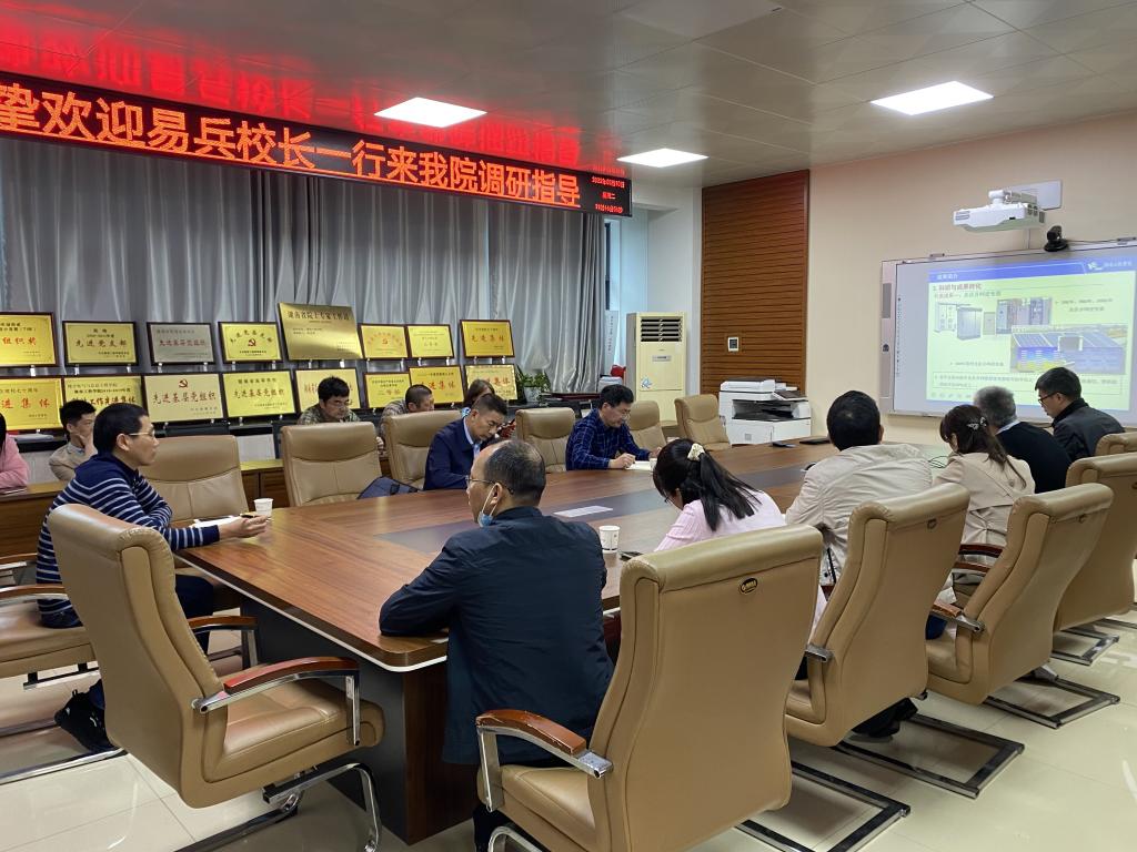 5月10日上午,校长易兵一行到成人视频 调研科研和产学研合作。学院领导班子、博士和教授代表、科研团队负责人参加调研座谈。