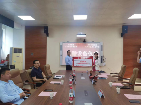 近日,威胜能源技术股份有限公司向成人视频 捐赠了一批总价值达5万元的仪器设备,该设备将用于成人视频 试验室建设。捐赠仪式在电气楼407会议室举行,成人视频 院长万琴代表学校接受捐赠。捐赠仪式由成人视频 副院长吴迪主持。