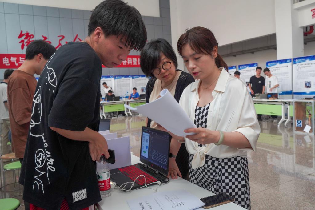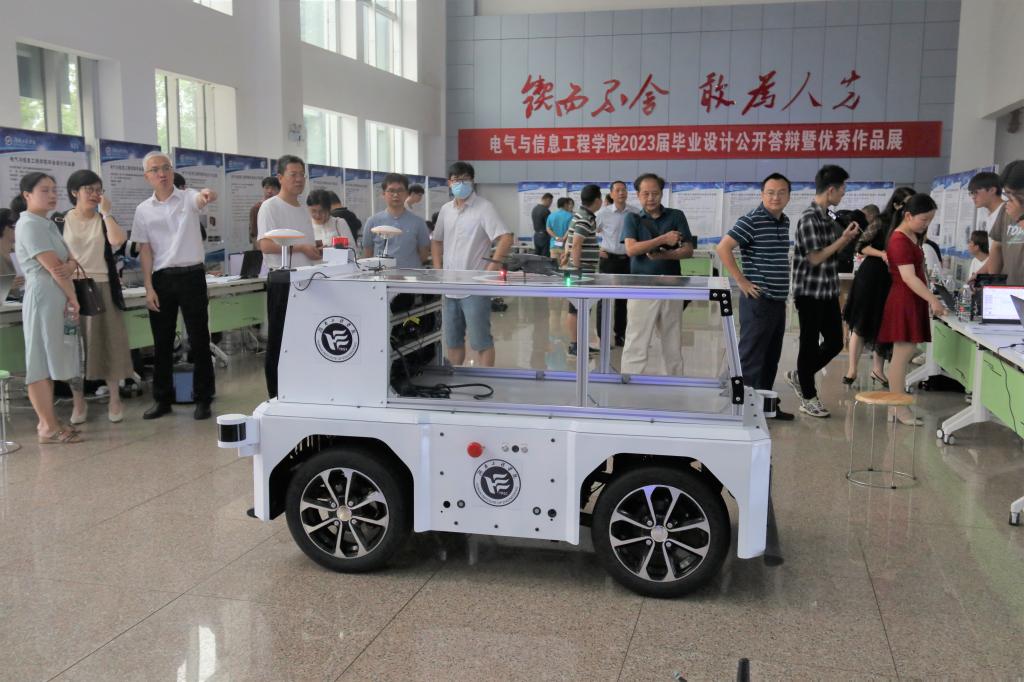 6月1日上午,成人视频 在电气楼大厅举行2023年毕业设计作品展暨公开答辩活动,校党委委员、副校长罗毅平,教务处、成人视频 、创新创业学院相关负责人,湘电集团高级工程师李卫华、湘潭新昕通用电气有限公司总工程师陈友林出席。