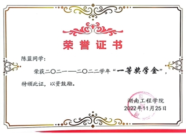 2022年11月 被成人视频 评为一等奖学金