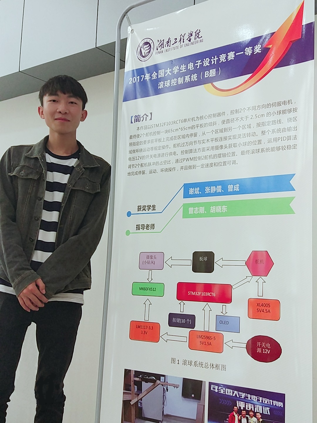 “成功从来不是一件轻而易举的事情,要努力,不放弃,为了自己的理想,为了美好的明天!”电子科学与技术1402班谢斌这样说。 本科经历:担任学校创新基地实验室管理员担任班级副班长担任电气学院学生会心理部副部长项目经历:无人值守四旋翼的设计滚球控制系统LED滚动显示装置智能滚轮排插多功能运动腕表智能感光照明系统风力平衡小车两轮避障循迹平衡小车基于超声波的自动跟随小车(企业项目)基于uwb的可折叠自动跟随载人...