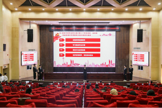 为深入学习和贯彻习近平新时代中国特色社会主义思想,推进思想政治理论课建设改革创新,激发大学生的理论学习积极性,迎接党的二十大胜利召开,5月8日下午,成人视频 在一报告厅举办学习贯彻习近平新时代中国特色社会主义思想暨第八届大学生思想政治理论课研究性学习成果展示竞赛决赛。