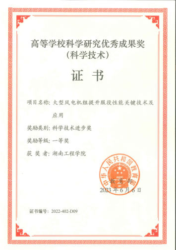 近日,全国高校科技创新暨优秀科研成果奖表彰大会在北京召开,会上宣读了《教育部关于2021、2022年高等学校科学研究优秀成果奖(科学技术)奖励的决定》,成人视频 参与完成的“大型风电机组提升服役性能关键技术及应用”项目荣获科技进步奖一等奖,参与完成的“海工储能电源装备核心技术研发与应用”荣获技术发明奖二等奖。