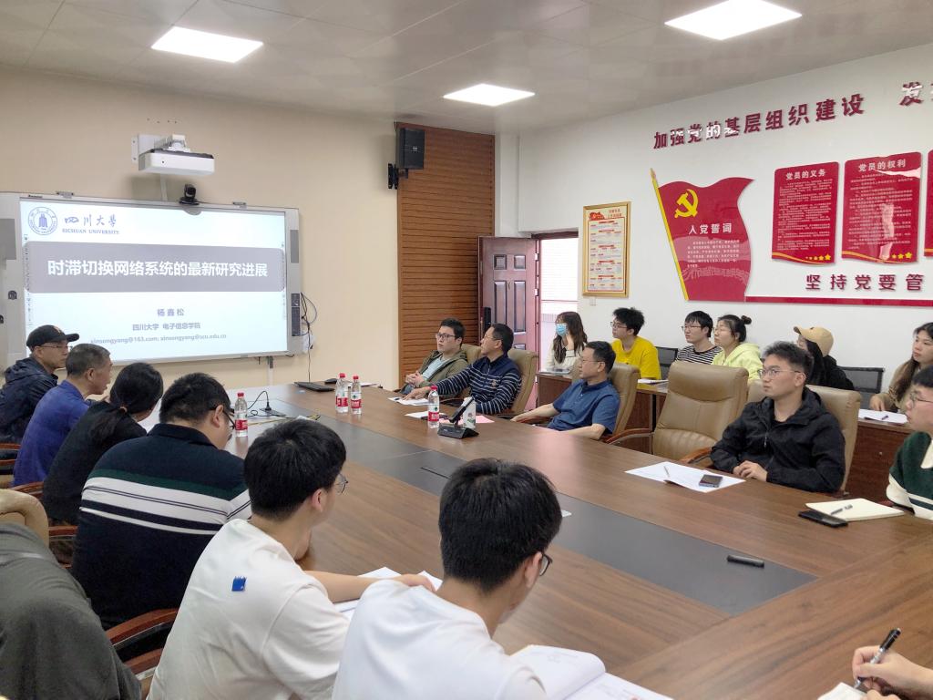 5月9日上午,四川大学“群体智能与控制”实验室负责人、博士生导师、教授杨鑫松应邀来校,在电气楼407会议室作《时滞切换网络系统的最新研究进展》的专题讲座。会议由党委委员、副校长罗毅平主持,成人视频 副院长林国汉及师生代表参加学习交流。