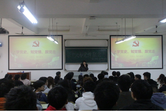 学院团总支书记杨小丽荣老师以习近平总书记关于百年未有之大变局重要论述出发,总结归纳了党史学习的意义,联系中国共产党的发展脉络,增强“不忘初心跟党走”的自觉性。杨老师从辛亥革命的历史背景开始,讲述了“五四运动”之后马克思主义开始在中国得到传播,揭开了新民主主义革命的序幕。“历史选择了中国共产党,没有中国共产党就没有新中国。”杨老师指出,十九大以来,习近平总书记高度重视并勉励新时代青年铭记历史、牢记使命、怀揣梦想、砥砺前行,教育引导大学生牢固树立正确的世界观、价值观、人生观,始终站稳政治立场,不断增强为人民服务意识,弘扬党的光荣传统和优良作风,真正做到学党史、知党情、跟党走。
