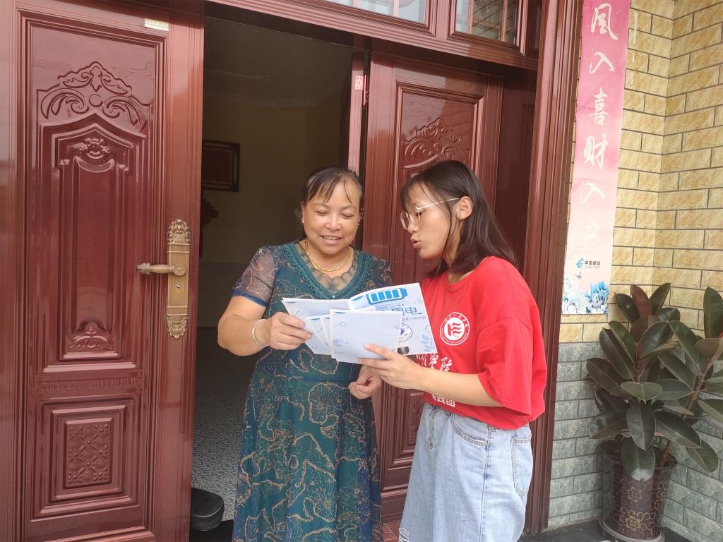 实践团成员对果园镇田汉村村民进行用电安全知识科普,降低用电风险,为居民的平安生活添一份保障,为当地的乡村建设助一份力。