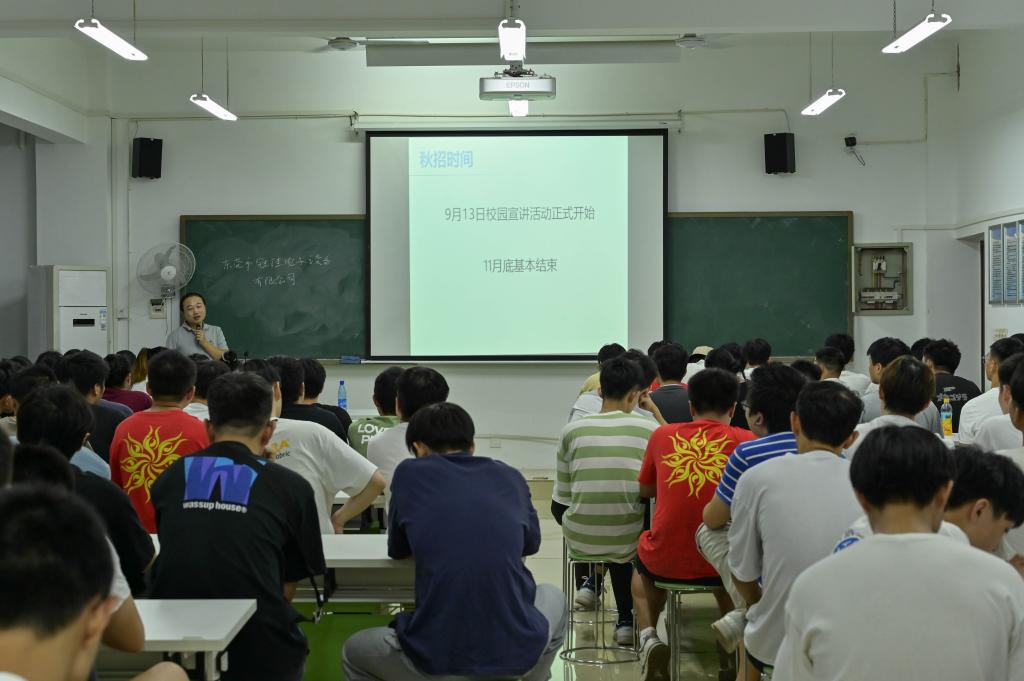 动员会上,李俊从当前就业形势引入,主要从秋招的重要性、求职应聘技巧和网签系统的使用进行讲解。首先着重说明了秋季校园招聘的时间段以及相较春季招聘、社会招聘的优势,并依托学院、学校就业工作的网站、公共平台,向学生进行宣传,引起学生的高度重视,促进大家求职意识的觉醒,积极投身求职活动;随后对学生不太了解的部分就业新概念进行了科普,提供了部分求职实用小工具供学生参考使用,并根据当前应疫情下的线上面试新环节进行了梳理,从而让学生能更有底气地参与到应聘环节中去;最后就毕业生网签的办理流程及注意事项、档案材料及去向等关键问题进行了讲解,并介绍了近期要完成的事项,就业问卷调查、生源地核验以及毕业生应聘场次登记。