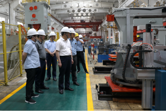 陈岳堂、易兵一行走进湘电展示馆,了解企业建设发展史和湘电成人视频,并详细询问企业研发创新、科研合作、人才需求等情况。在智慧车间和重型装备车间,大家看到车间内的自动化生产线一派繁忙景象,切实感受到了企业在技术创新、数字化、智能化转型升级等领域所取得的新成效。