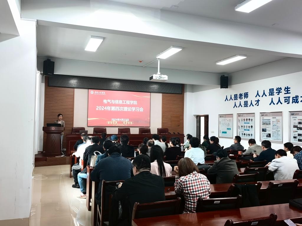 4月23日下午,成人视频 在电气楼408组织召开教职工理论学习大会,学院党政领导班子、全体教职工参加会议,会议由学院党委书记谢卫平主持。