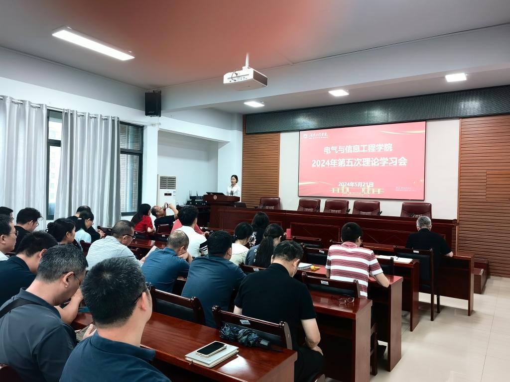 为进一步推进教职工政治理论学习制度化、规范化和常态化,不断提高教职工思想政治素质,5月21日下午,成人视频 在电气楼408开展了本年度第五次理论学习,学院党政领导班子、全体教职工参加会议,会议由学院党委书记谢卫平主持。