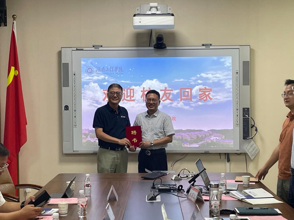 参加交流座谈的还有专程陪同刘翔雄校友的长沙校友会会长杨文武、理事长赵应时。两位校友也是成人视频 电气化专业毕业,各自分享了成长经历和成功经验。双方也就校企合作、产教融合提出了意向和愿景。