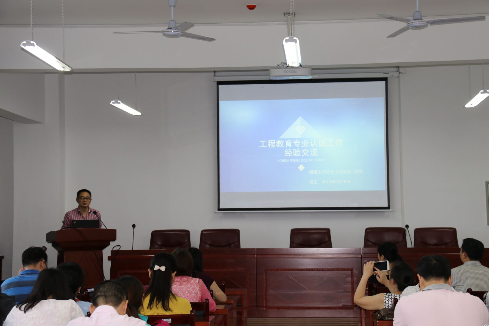 5月19日下午,湘潭大学信息工程学院院长段斌教授在电气楼408会议室,为电气学院的老师进行了一场工程教育专业认证工作的经验交流会。段教授近年来潜心研究工程教育专业认证技术支撑体系,对专业认证的各项工作及指标体系有着深刻的理解,是工程教育认证专家。