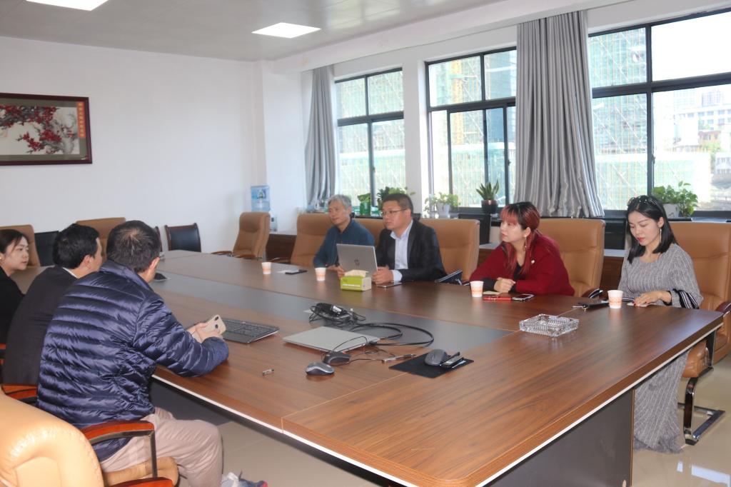 考察交流会在电气楼407会议室举行。会上,唐勇奇院长代表学院对来宾表示热烈的欢迎,并对学院专业发展、学科建设、人才培养及实验室建设等进行了介绍。孙绍泉、杨文武介绍了纺织行业面临设备智能化升级改造的巨变,面对如此机遇,长沙校友会决定成立纺织行业分会,目前该行业分会正在筹备中。校友会行业分会希望和学校进行深度合作,通过学校寻找湖南纺织行业、纺织配套电气行业优质校友资源,依托学校机械工程、电气及控制方向的强大技术力量,成立纺织电控智能化实验中心,对协会中的企业进行技术支持,实现共赢。