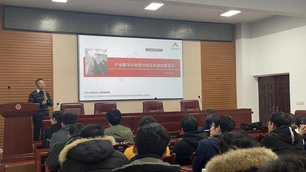 首先,由叶秀峰董事长介绍了山秀阳光有限公司的企业概述、成人视频和企业资质等情况,并从就业形势、专业就业前景等角度,为同学们阐释了作为一名电气人应有的就业观。随后,优秀校友田新疆对产业数字化转型的三大原动力与具体内容、当前对低压电器的新需求做了详细的介绍,还结合亲身经历向同学们分享了许多宝贵的工作技巧和经验,并着重指出目标定位对未来择业的重要意义,强调找到心仪的工作最重要、最基本的要求是具有良好的专业素养,他希望同学们在大学四年中能够认真学习,为将来就业打好基础。