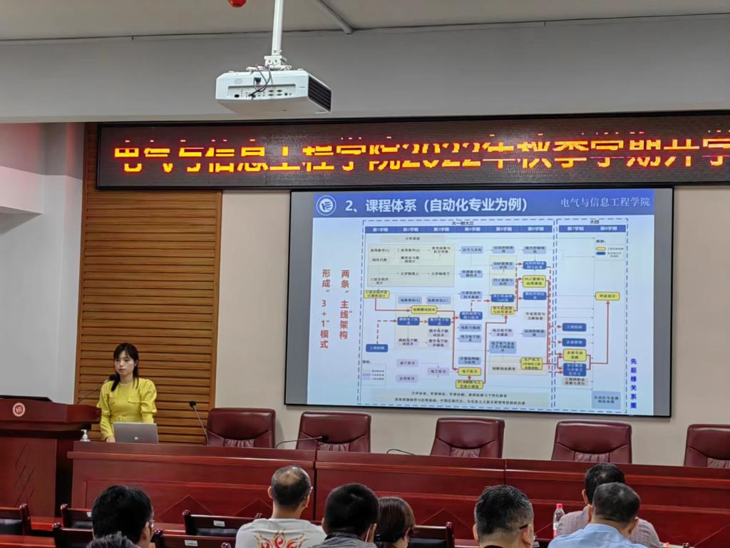 院长万琴指出,在全院教职工的共同努力下,学院各项工作在暑期有条不紊地向前推进。自动化自评报告于7月19日提交最终版,8月份通过认证协会评审,并已下发批文将于今年11月20-22日入校考察;电子信息专业认证自评报告(第一版)已于8月10日完成提交;学院分专业多次召开2022版人才培养方案修订会,对培养方案进行修订完善;控制学科和电气工程学科于8月份完成省教育厅的验收。万琴对本学期的重点工作进行了布置,并强调,由湖南大学和成人视频 协办的中国图象图形大会青年科学家会议将于9月召开,此外还有“科创中国”机器视觉企业行、“全国科普日”大会等一系列活动,希望广大教职工踊跃参加。随后,万琴还作了《面向产业、校企融合,培养大电类应用型卓越工程人才》的主题报告,号召广大教师努力打造“金课”,矢志成为“金师”,为一流学科专业建设和卓越工程人才培养做出自己的贡献。其他班子成员分别就各自分管工作进行了汇报,对本学期即将开展的工作进行了展望,并做了统筹安排。
