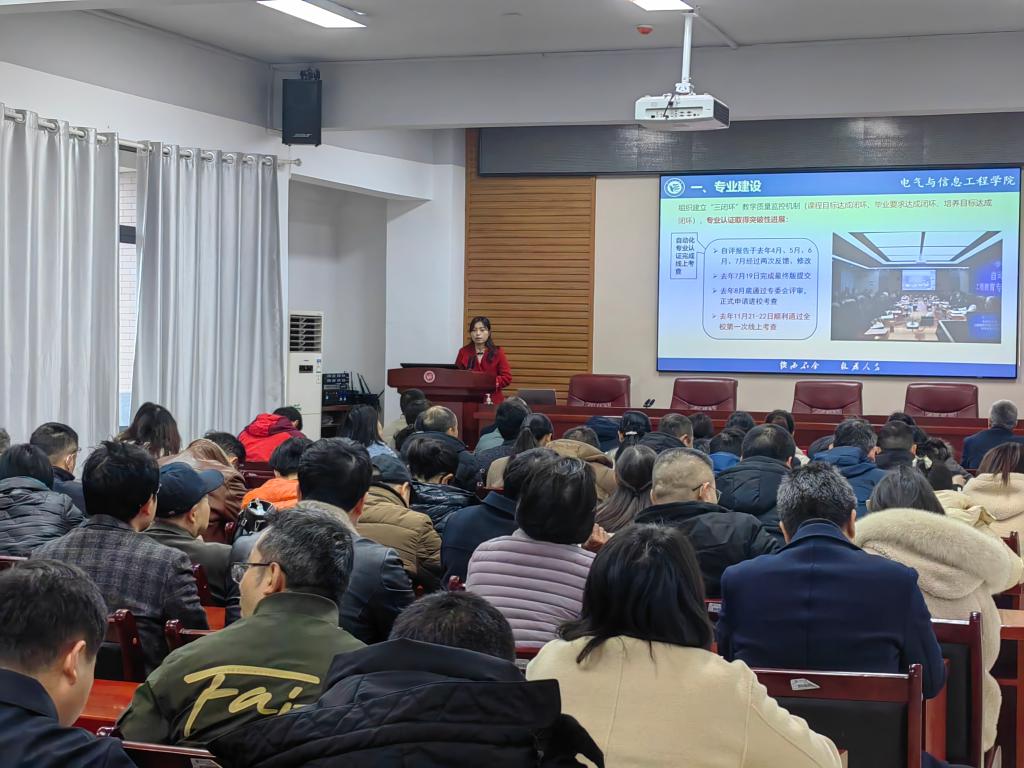 院长万琴作《深化“全局观、系统观、优化观”,推进高质量发展》的报告,围绕专业建设、教学质量建设、科研工作、产业学院与实验室建设、师资队伍建设等方面展开介绍,回顾了过去一年学院所取得的成果,并部署了本学期的重点工作。万琴指出,学院要努力建立健全“三闭环”人才培养体制机制,不断提升人才培养水平;要以学科建设为龙头、专业认证为标准,持续加强学科专业建设;要以学校“申硕”为中心任务,有序开展教学、科研等各项工作,助力学校发展。随后,其他班子成员分别就各自分管工作进行了汇报,对本学期即将开展的具体工作进行了部署和规划。