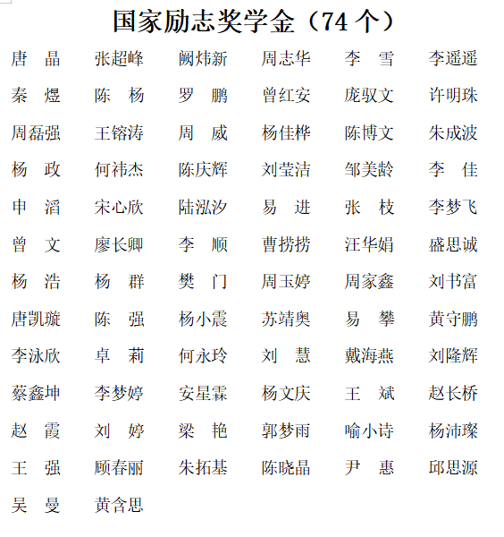 根据湖南省教育厅文件精神和学校国家奖助学金评定办法,经个人申报、班级国家奖助学金评定工作推荐小组票决制集体推荐、院国家奖助学金评定工作领导小组核查,初步评定了学院2018—2019学年国家励志奖学金和2019-2020学年国家助学金名单如下: