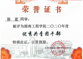 2021年4月 被共青团成人视频 委员会评为2020年度“优秀共青团干部”