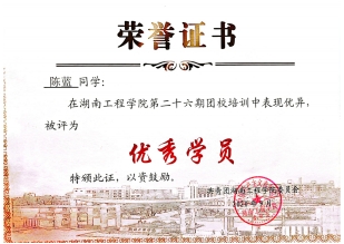 2020年9月 被共青团成人视频 委员会评为第二十六期团校培训“优秀学员”,并在第二十七期团校培训上作为优秀学员代表发言