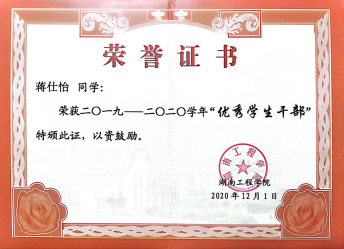柔柔细雨,暖暖春情。我作为学习委员积极处理班级相关事务,勤勤恳恳,主动架起老师和同学之间的沟通桥梁,并且协助各个班委做好各项工作,因此得到了老师和同学们的一致好评,连续两年获得校优秀学生干部等荣誉称号。