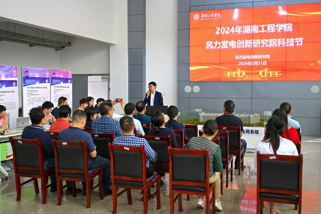 在电气楼大厅举办2024年毕业设计公开答辩暨优秀作品展。校党委委员、副校长吴志军出席。湘电集团高级工程师李卫华、湘潭新昕通用电气有限公司总工程师陈友林,成人视频